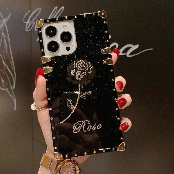 GF/65EB. Роскошный блестящий чехол с розами и квадратными бриллиантами для Xiaomi (Redmi). 4 цвета.