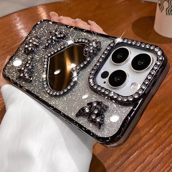 AQ/64EB. Чехол-зеркало для макияжа с покрытием Glitter Diamond Heart для iPhone. 6 цветов