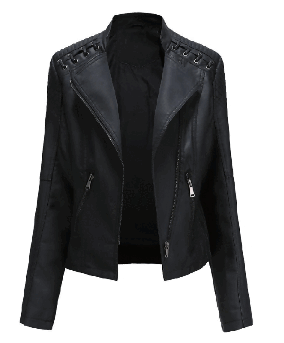 BB/28LE. Женская модная кожаная куртка на шнуровке Slim Fit весна, осень, на молнии. 6 цветов